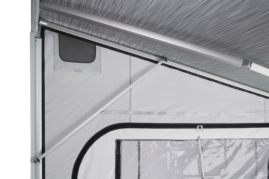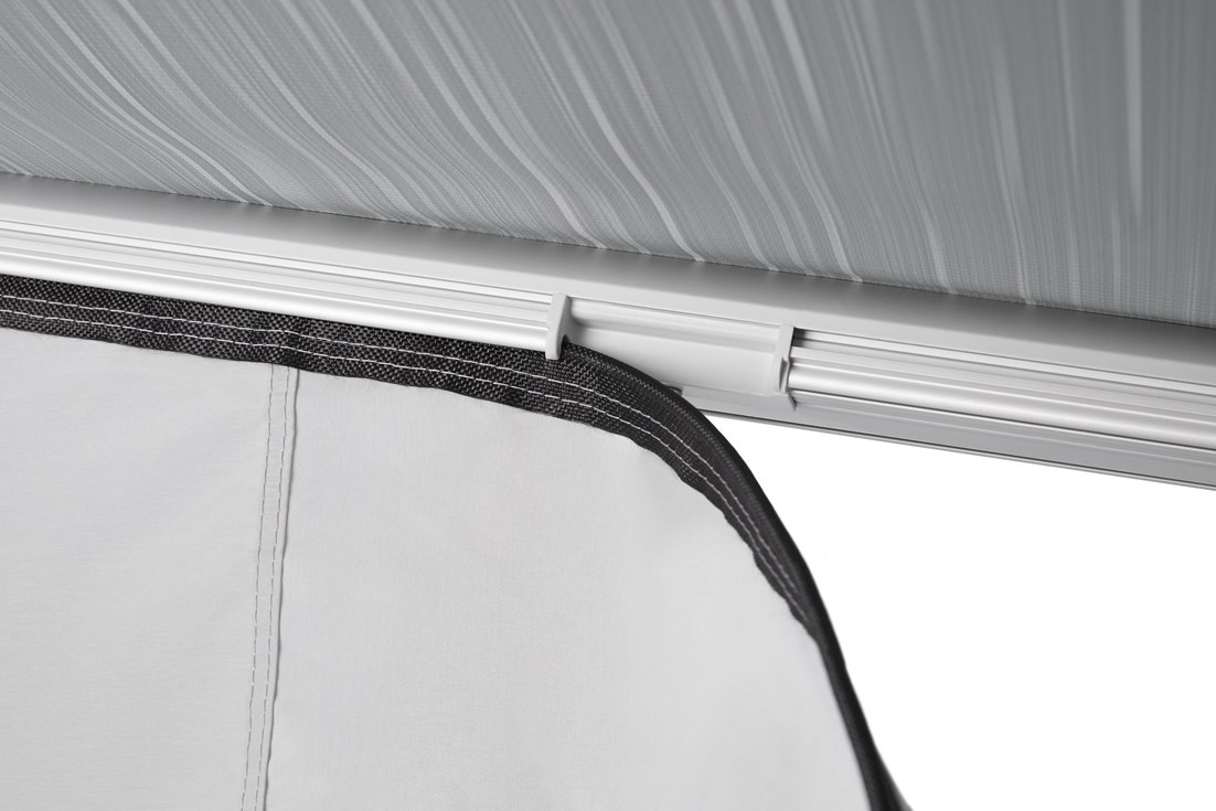 • Sellado perfecto del techo gracias a los perfiles de sujeción para montar los paneles laterales y conectarlos al tejido del toldo
