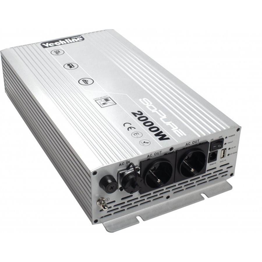 Desarrollada específicamente para los vehículos de recreo, es la solución ideal para alimentar a 230 V los aparatos de alta potencia (acondicionadores de aire, secadores de pelo, cafeteras expreso, etc.) o los aparatos que requieren una calidad de corriente perfecta (ordenadores, equipos médicos, etc.). Los convertidores son compatibles con todas las baterías: plomo-ácido, AGM, gel, LiFePO4, calcio. Todos los modelos están equipados con un mando a distancia para un fácil control remoto del convertidor. Los modelos de 2000 W y 3000 W tienen un sistema inteligente que desconecta automáticamente la batería en cuanto el vehículo se conecta a 230 V (prioridad de red). Están diseñados para funcionar con total seguridad (protección contra la inversión de polaridad, cortocircuitos, sobrecarga, sobrecalentamiento, seguridad de baja tensión de la batería...). Incluye soportes de montaje.