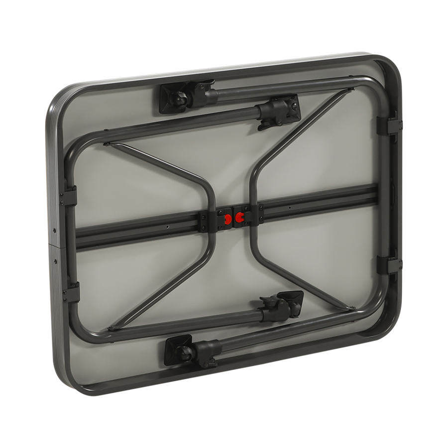 El tablero sintético de la mesa Alba es resistente a los arañazos y al calor hasta 100 °C y puede soportar hasta 35 kg. La mesa es lo suficientemente grande para cuatro personas. Además, la mesa de camping gris es resistente al agua y a los rayos UV. Eso significa que conservará muy bien su color gris. Después de su uso, limpie fácilmente la mesa con un paño húmedo.