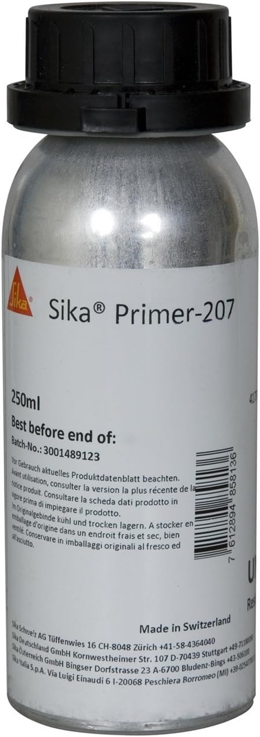 Sika® Primer-207 es un primer base solvente negro, que reacciona con la humedad formando una capa delgada. Esta capa actúa como un enlace entre sustratos y adhesivos. Sika® Primer-207 está formulado específicamente para el tratamiento en la unión de superficies antes de la aplicación de los poliuretanos de un componente de Sika. Puede proporcionar una excelente adhesión sin un paso de activación previo en muchos sustratos. Sika® Primer-207 emite fluorescencia debajo de la longitud de onda de los rayos UV durante un período de tiempo limitado. Esta característica se utiliza en el control en proceso.