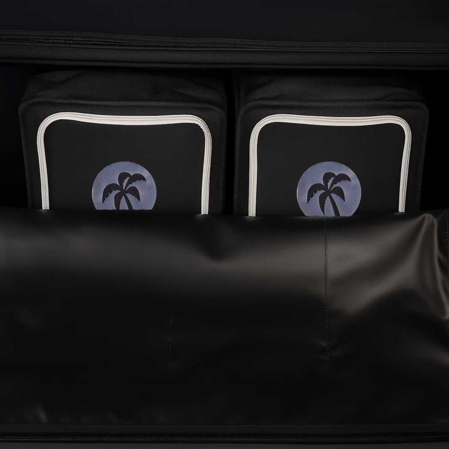 • Fabricada en tejido duradero de color negro, con logo de palma y cremallera blanca.