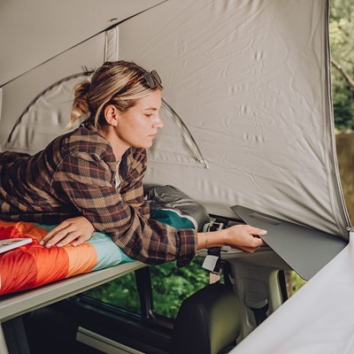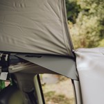 El práctico compartimento de almacenamiento para el techo elevable de la Volkswagen California T5/6/6.1. Ya sea para el móvil, la botella o para guardar tus objetos más valiosos de forma segura por la noche, este compartimento se guarda fácilmente debajo del colchón cuando el techo elevable está plegado. Además, es fácil de montar y desmontar gracias a las almohadillas de velcro incluidas. Para cerrar el techo elevable, no es necesario desmontar el compartimento. Puedes elegir uno de los dos laterales o añadir un compartimento a cada lado. Todas las funciones del techo elevable (como el puerto USB y el interruptor de la luz) se conservan. El compartimento se entrega como un kit; solo tienes que fijar el logotipo y las almohadillas de velcro.