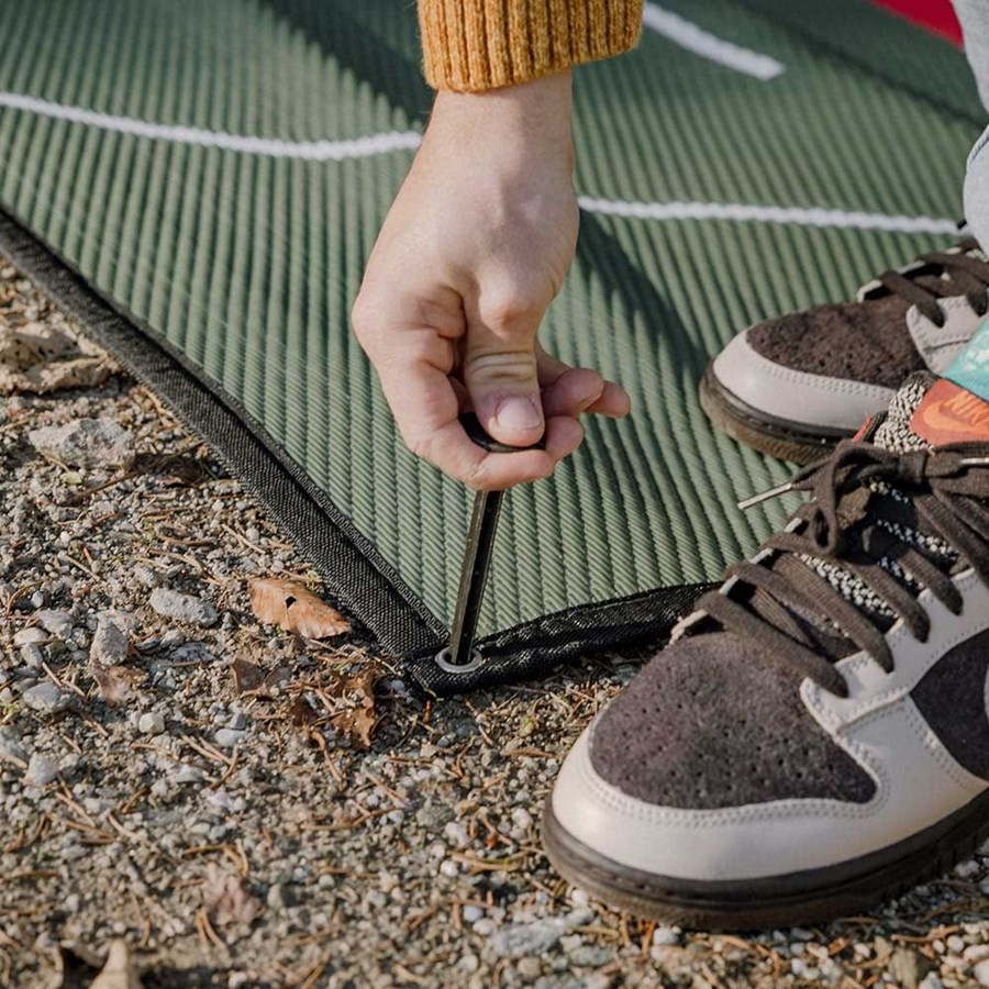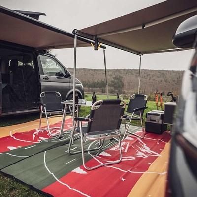 Nuestra alfombra diseñada por BUS-BOXX no solo es superligera, sino que también llama la atención. Fabricada con pequeños y duraderos tubos de polipropileno para una sensación suave, es muy ligera y fácil de guardar en la bolsa de transporte incluida. La suciedad se elimina fácilmente de la superficie enjuagándola con agua. Es lavable, ignífuga y resistente a los rayos UV, lo que garantiza que los colores se mantengan vibrantes incluso bajo la luz solar.