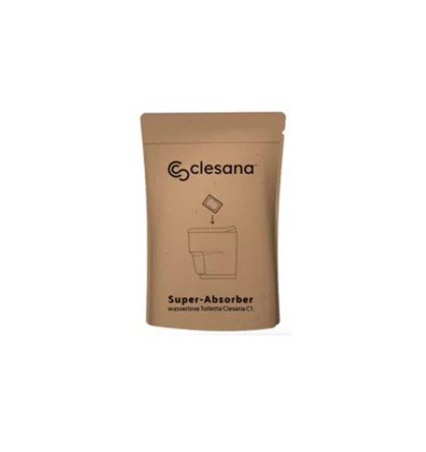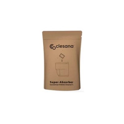 Las bolsas superabsorbentes Clesana están diseñadas para absorber rápidamente los líquidos y mejorar la higiene de su inodoro sin agua Clesana C1. Basta con colocar un absorbente en el inodoro antes de utilizarlo y la película de PVA bioplástico se disuelve automáticamente mientras los gránulos absorben hasta 400 ml de líquido.