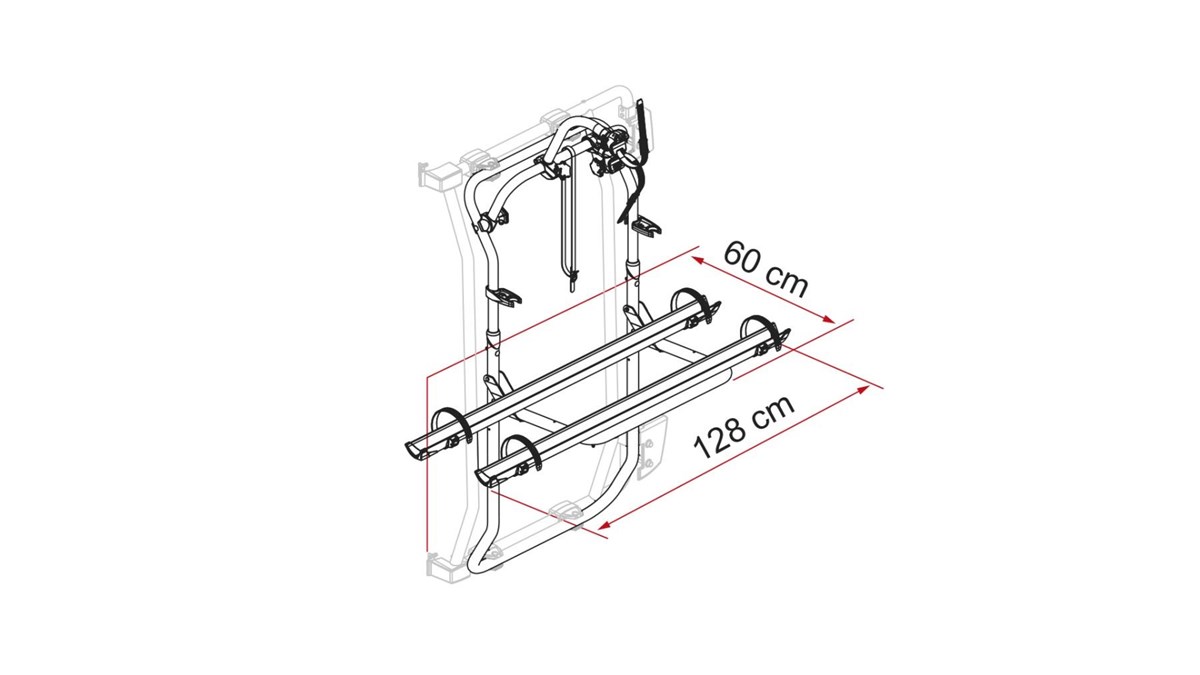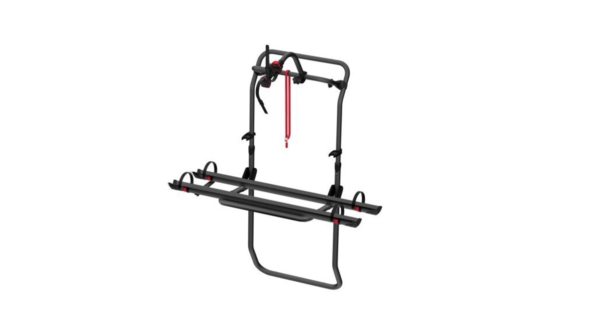 Diseñado para montaje en la parte trasera mediante el kit correspondiente, permite una sujeción estable y está pensado para el transporte de bicicletas en uso camper/autocaravana.