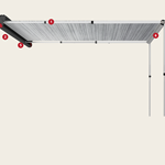 Ligero, pero muy resistente, este toldo de aluminio con patas y brazos integrados en el rodillo es ideal si deseas hacer un viaje de aventura en tu monovolumen, todoterreno, SUV o caravana.