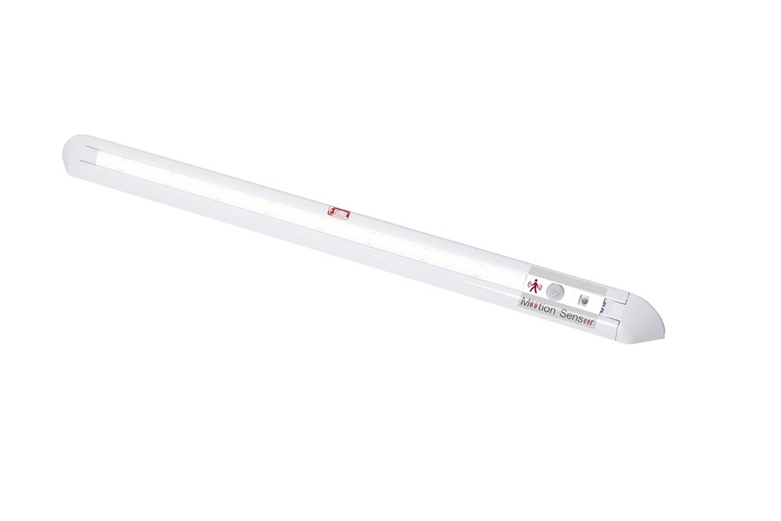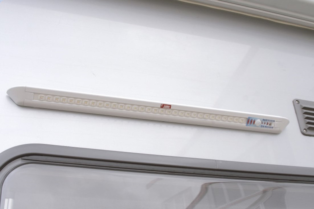 Con sensor de movimiento y de luz, se enciende en cuanto se acerca una persona al sensor, solamente cuando está oscuro, y permanece encendida 60 segundos. Diseñada para instalarse sobre la puerta de las autocaravanas y las caravanas.