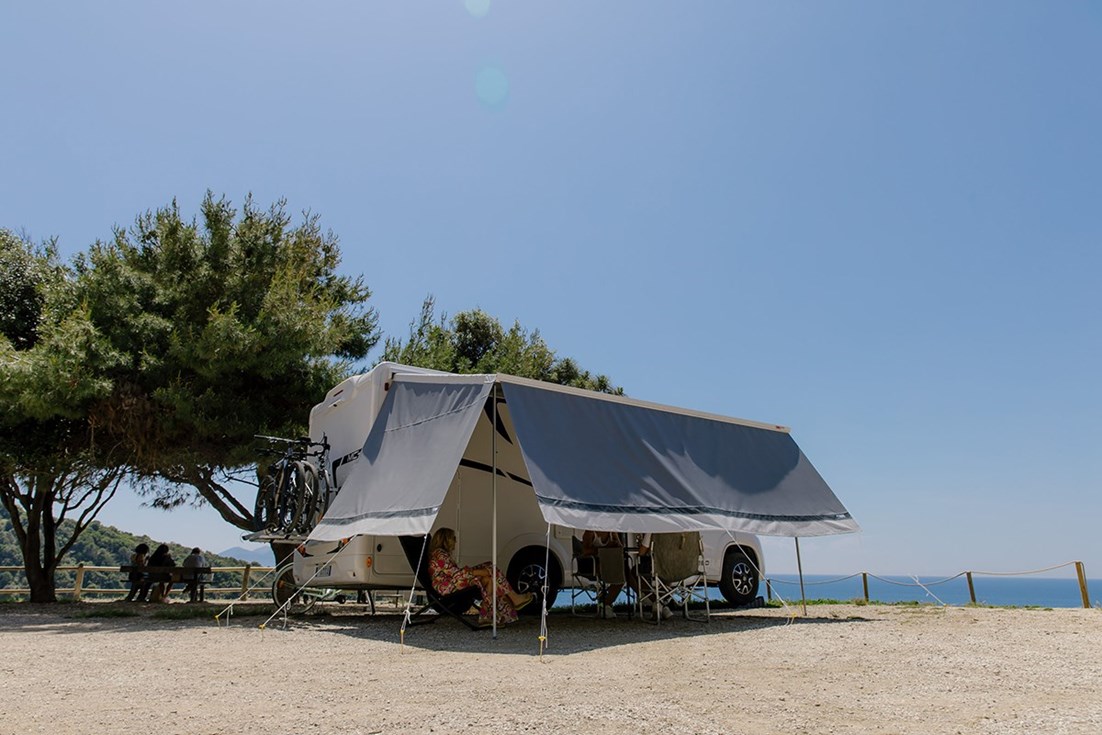 Panel lateral muy cómodo, en combinación con la pared frontal Blocker. Protege del sol y de la lluvia y proporciona más privacidad.