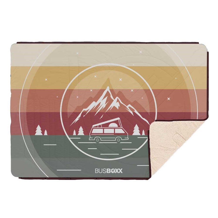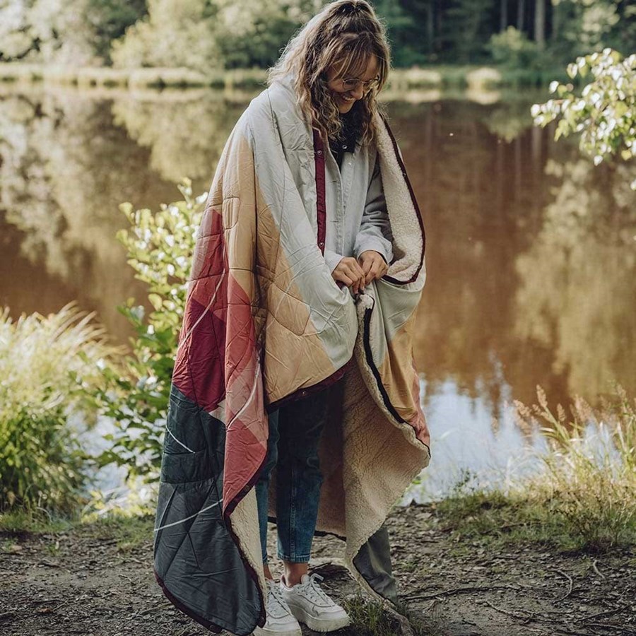 Nuestra PillowBlanket™ está fabricada con tejido Ripstop REPREVE (derivado de botellas de plástico recicladas), lo que la hace ecológica y duradera.