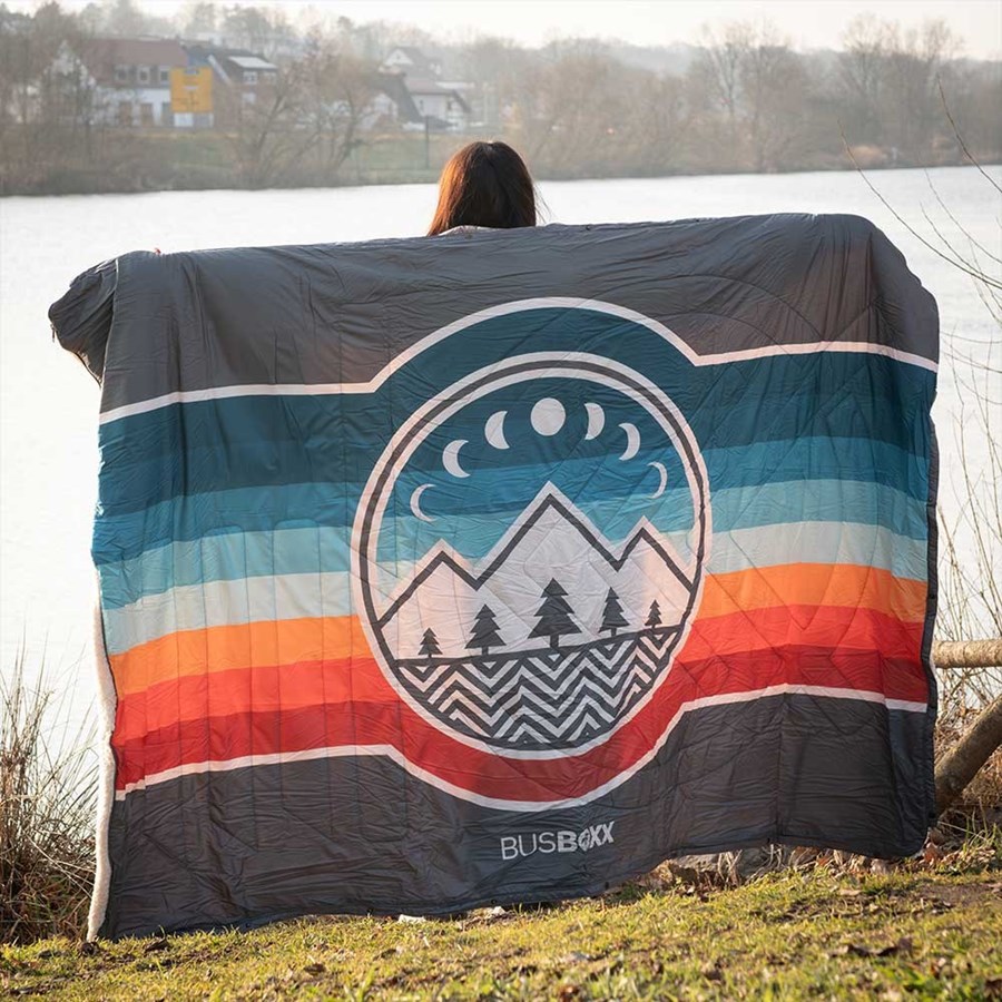 Nuestra PillowBlanket™ está fabricada con tejido Ripstop REPREVE (derivado de botellas de plástico recicladas), lo que la hace ecológica y duradera.