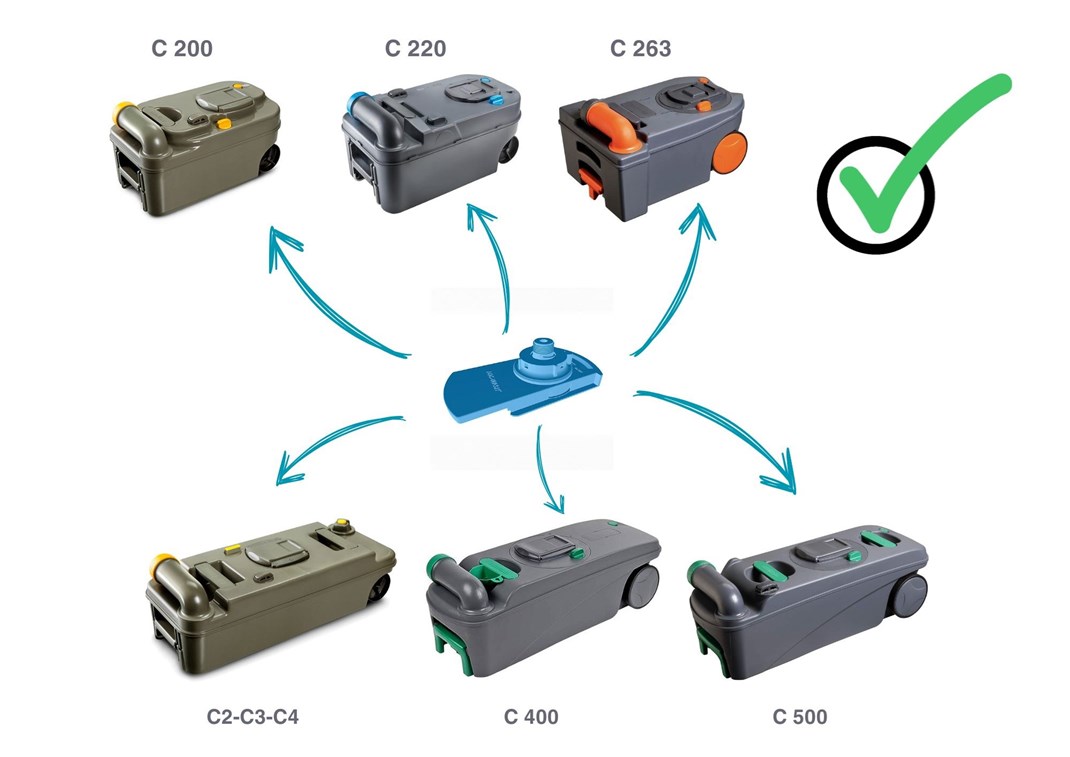Universal: para todos los depósitos de casete Thetford® (¡Dometic® y Porta Potti® próximamente!).