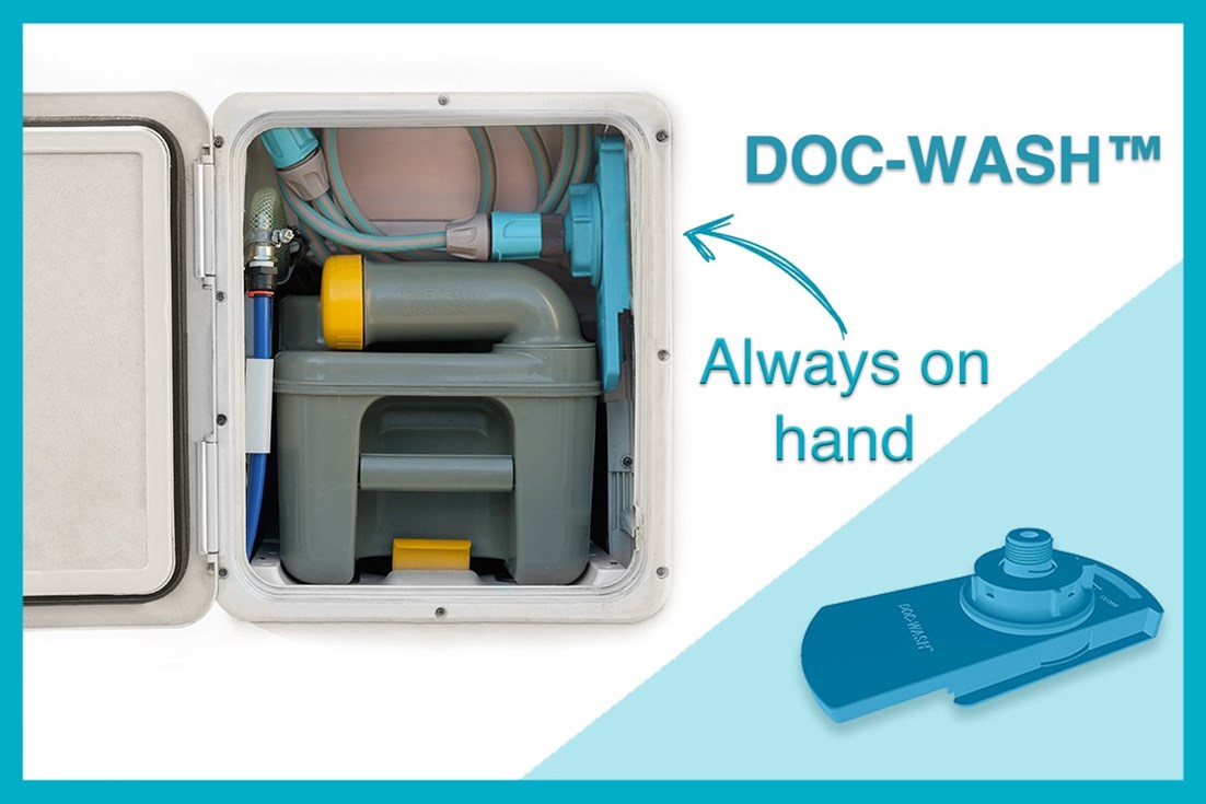 Con DOC-WASH, limpiar el depósito de residuos de tu inodoro de casete es por fin práctico y rápido. Este innovador accesorio te permite: