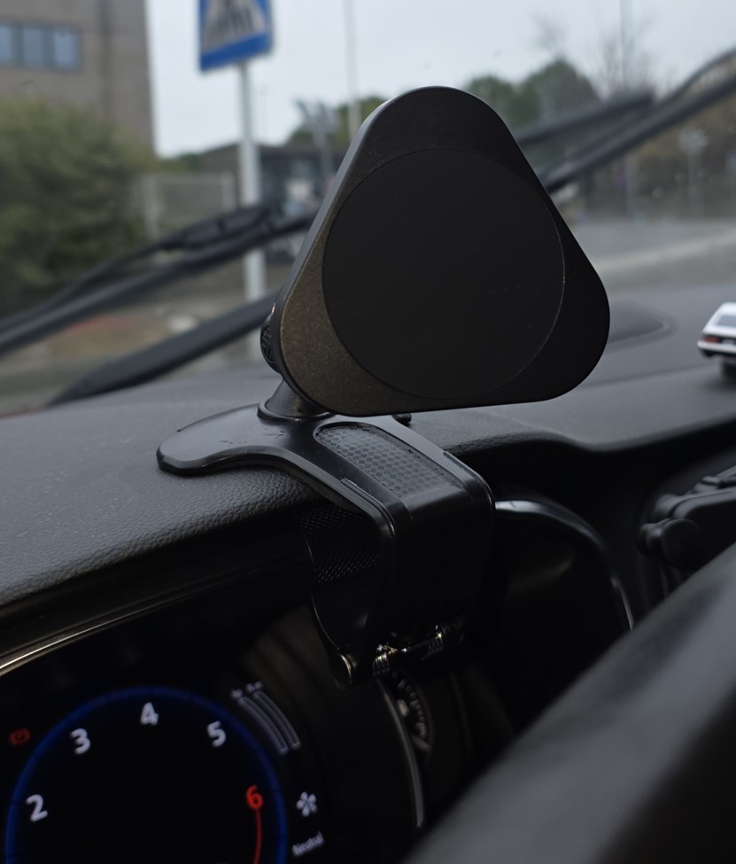 - El soporte puede fijarse en numerosos puntos del vehículo: el marco de una ventana, el retrovisor exterior, el manillar de una moto, el salpicadero o cualquier elemento donde la pinza pueda sujetarse con firmeza. Está diseñado para adaptarse tanto al exterior como al interior del vehículo, siempre que la superficie sea estable.