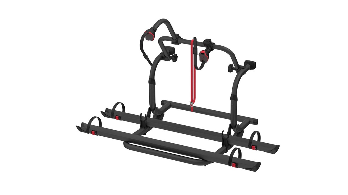 El portabicicletas compacto y universal para todas las paredes. Se instala bajo el ventanal trasero y hace posible su apertura.