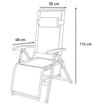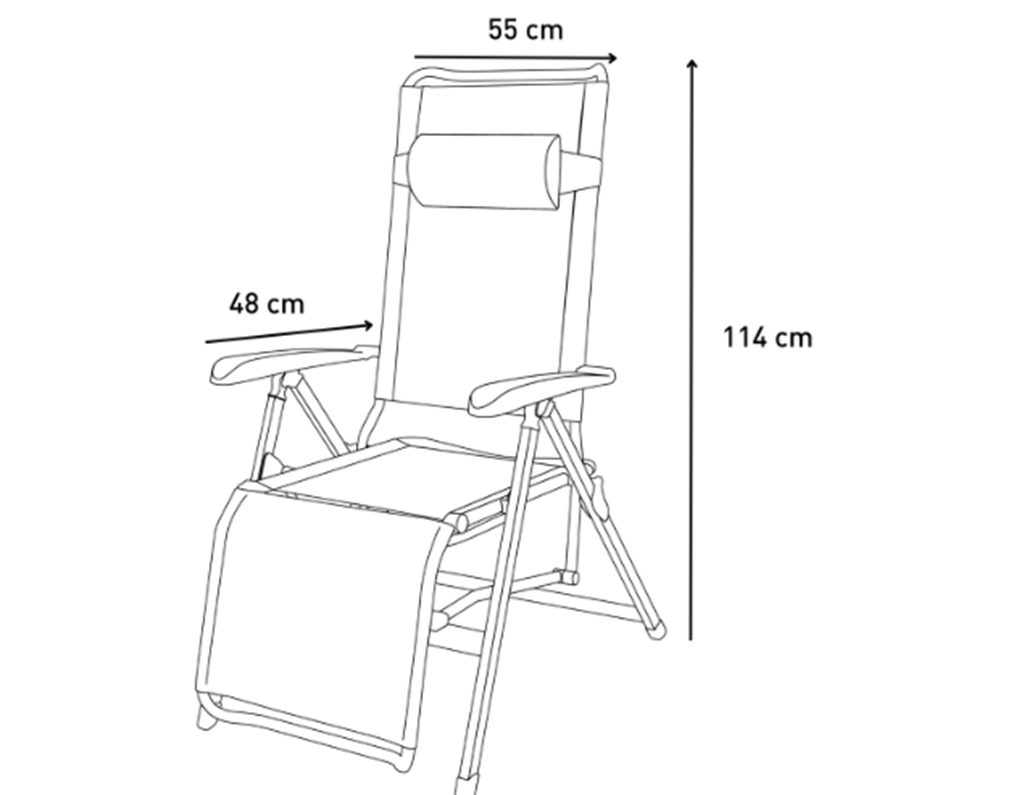 Su sistema de plegado rápido y sencillo es una verdadera ventaja. Permite un almacenamiento ultracompacto, ideal para desplazamientos y almacenamiento. Gracias a sus dos asas situadas debajo de los reposabrazos, puede ajustar fácilmente la inclinación del respaldo para encontrar la posición más cómoda. El reposacabezas integrado y ajustable le ofrece un apoyo adicional, garantizando un confort personalizado.