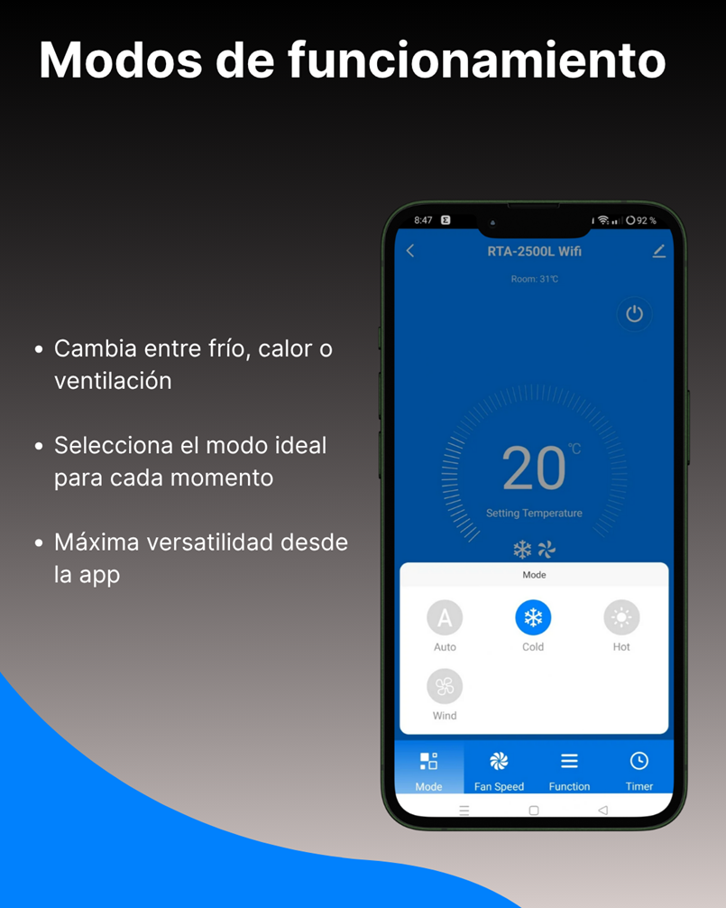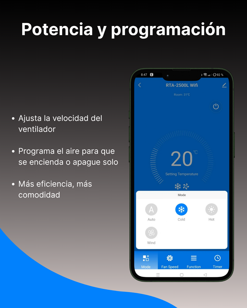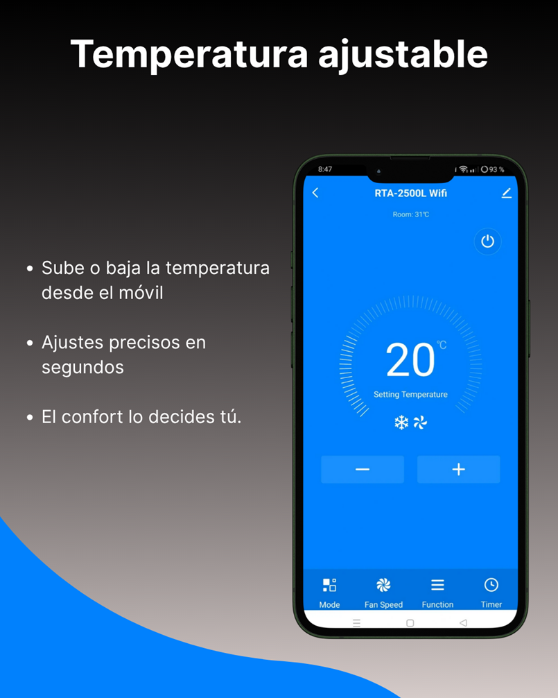 - Puede ajustar fácilmente el aire acondicionado entre 16 °C y 31 °C.
