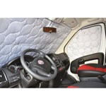 El kit de cabina consta de tres partes: 1 para el parabrisas y 2 para las ventanas de las puertas delanteras. Compuesta por 9 capas de materiales sintéticos de alta calidad, proporcionan un excelente aislamiento contra el calor y el frío y ralentizan la condensación. Se aplican a la superficie de los cristales, haciendo que sean totalmente opacos. El salpicadero queda protegido de los efectos no deseados de los rayos del sol. Fácil montaje y desmontaje gracias a sus ventosas específicas. La cortina, al ubicarse en el interior del vehículo, se mantiene en condiciones impecables independientemente del clima y se puede almacenar con facilidad después de su uso.