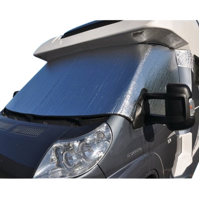 Cortina exterior de cabina, eficaz contra los rayos del sol, el frío y las inclemencias meteorológicas. Aislamiento compuesto por 3 capas: 1 lámina metalizada reforzada de 30 g/m², 1 capa de burbujas 104/150 y 1 lámina metalizada reforzada de 30 g/m². Sujeción mediante bandas elásticas anchas y ventosas especiales; instalación rápida y sin esfuerzo.