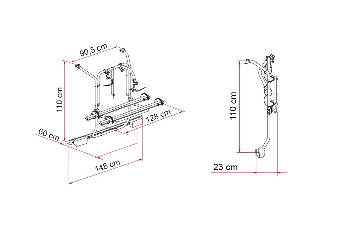 • Repisa de aluminio 6060: para transportar hasta 3 bicicletas